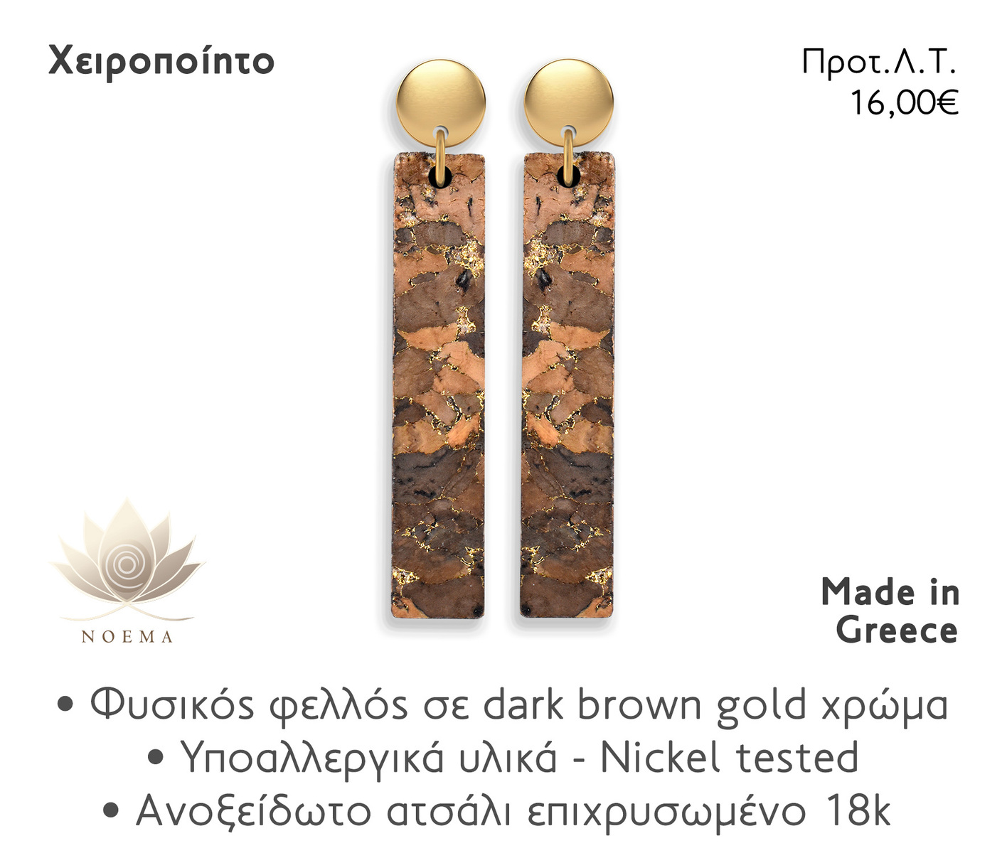 Υλικό: φυσικός φελλός σε dark brown gold χρώμα